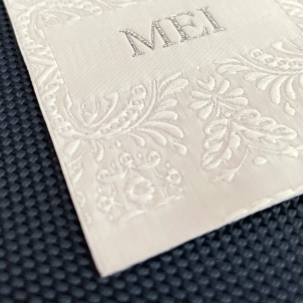 MEI UNIQUE’s goal is to highlight a label’s quality and optimal definition by using the specific “Satin Plus” loom configuration. At the touch and up close, it feels and looks like a traditional wedding dress, with its elegant total white look and lurex yarns.